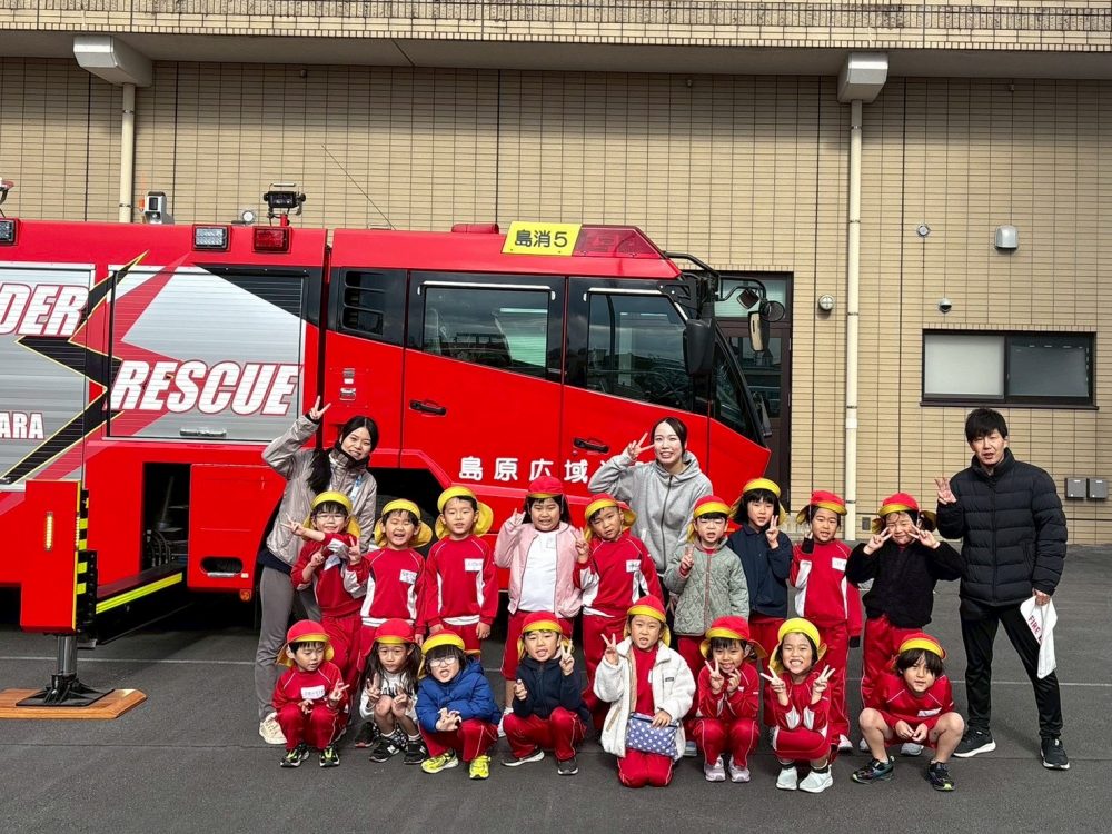 きく組さんが、島原消防署へ行ってはしご車体験をしてきました! はしご車を目の前にすると、わ〜動いてる!高〜い!と感動する子どもたち😳 早速、ヘルメットを装着! ちょっと不安そうな子もいます、、、 カッコよく変身!🧑🚒さ […]