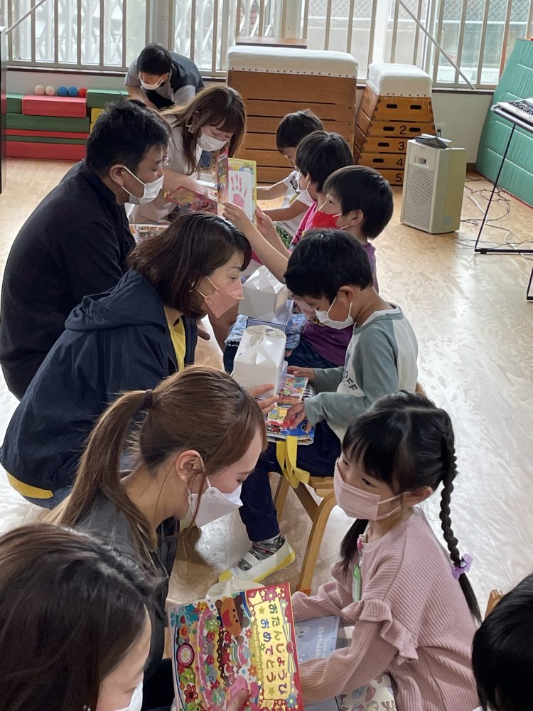 5月11日は、4.5月生まれの子どもたちのお誕生会がありました。 年少組さんは、初めてのお誕生会の参加で、出席されたお家の方や、お友達の前での発表にドキドキしたようです。 また、年長さんは、得意なことの発表もしました。跳