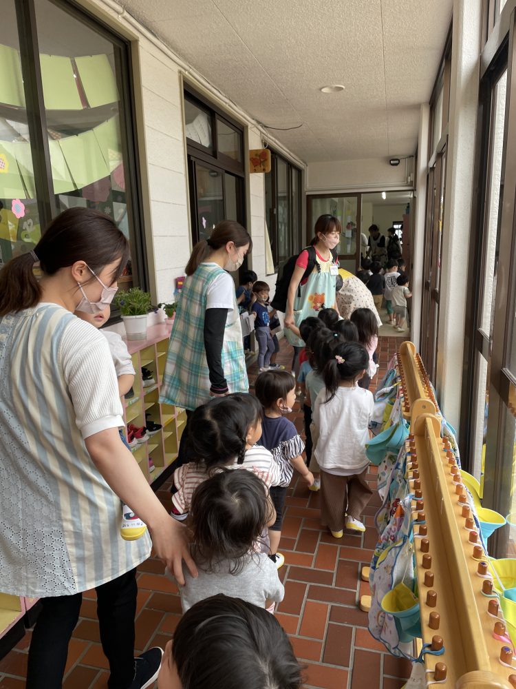 5月20日に、今後の大雨の水害に備えた避難訓練をしました。 放送をしっかり聞いて、避難場所の部屋に避難することができました。 短い時間で避難場所に集まることができ、その場で静かに園長先生のお話を聞くことができました。 各