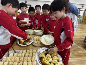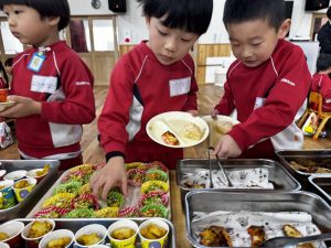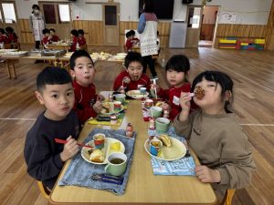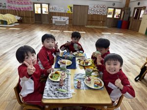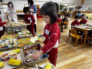 05 3月2025 0 バイキング給食🍙 子ども達の様子 年長きく組は先日バイキング給食を楽しみました!給食の先生に食事のバランスの話を聞き、早速器に自分の食べたいものを取って行きます♪ 自分の分を取ったらみんなでいただきます✨ 何度もおかわりして”楽しい!!”と満足そうな子ども達でした✨