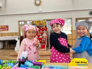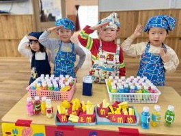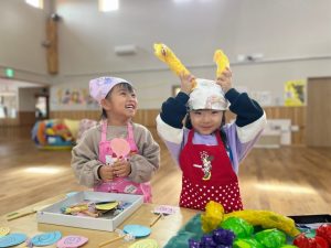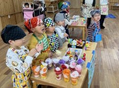 「これくださーい」「100円です!」と、お客さんや店員さんになりきっています🧑🏻🍳