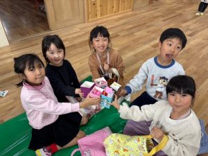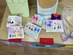 お助けマンで、年長のお兄さんお姉さんもバックやめんこ、お人形などたくさんの商品を作ってくれました!