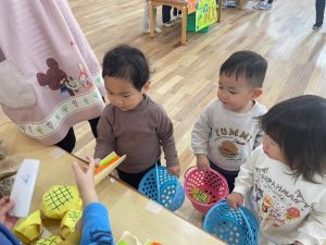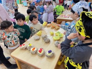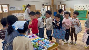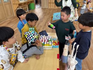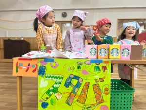 年中・年少の子どもたちは、自分たちが作った商品を買ってもらえて、とっても嬉しそう…