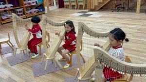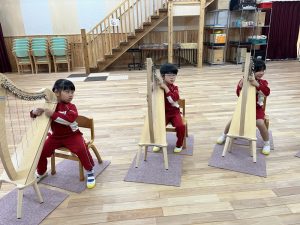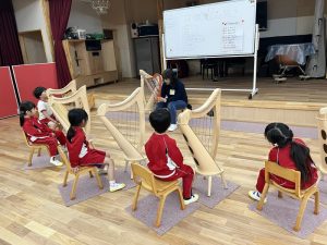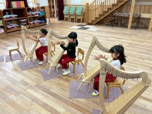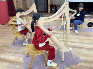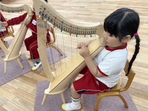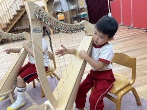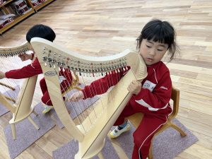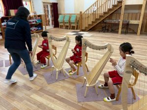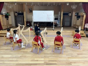 かおる先生と一緒に、2回目のハープレッスンをしました!きく組になってからは、初めてのレッスン。覚えているかな〜??