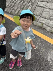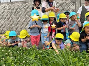 帰り道は、シロツメクサをみんなで摘んで園に帰りました🌈