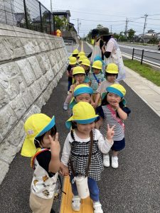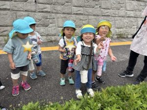 すみれ組まではお散歩ロープを持って歩いていましたが、うめ組からはお友達としっかり手を繋いで歩きます✨