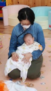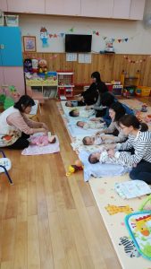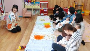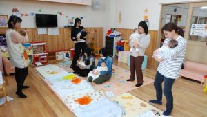あんぱんまん教室で、お母さんと一緒に楽しくタッチケアをしました。(^-^)
