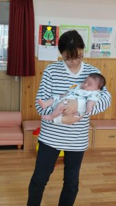 お母さんに抱っこしてもらい、幸せパワーで眠くなってきましたね。(^-^)