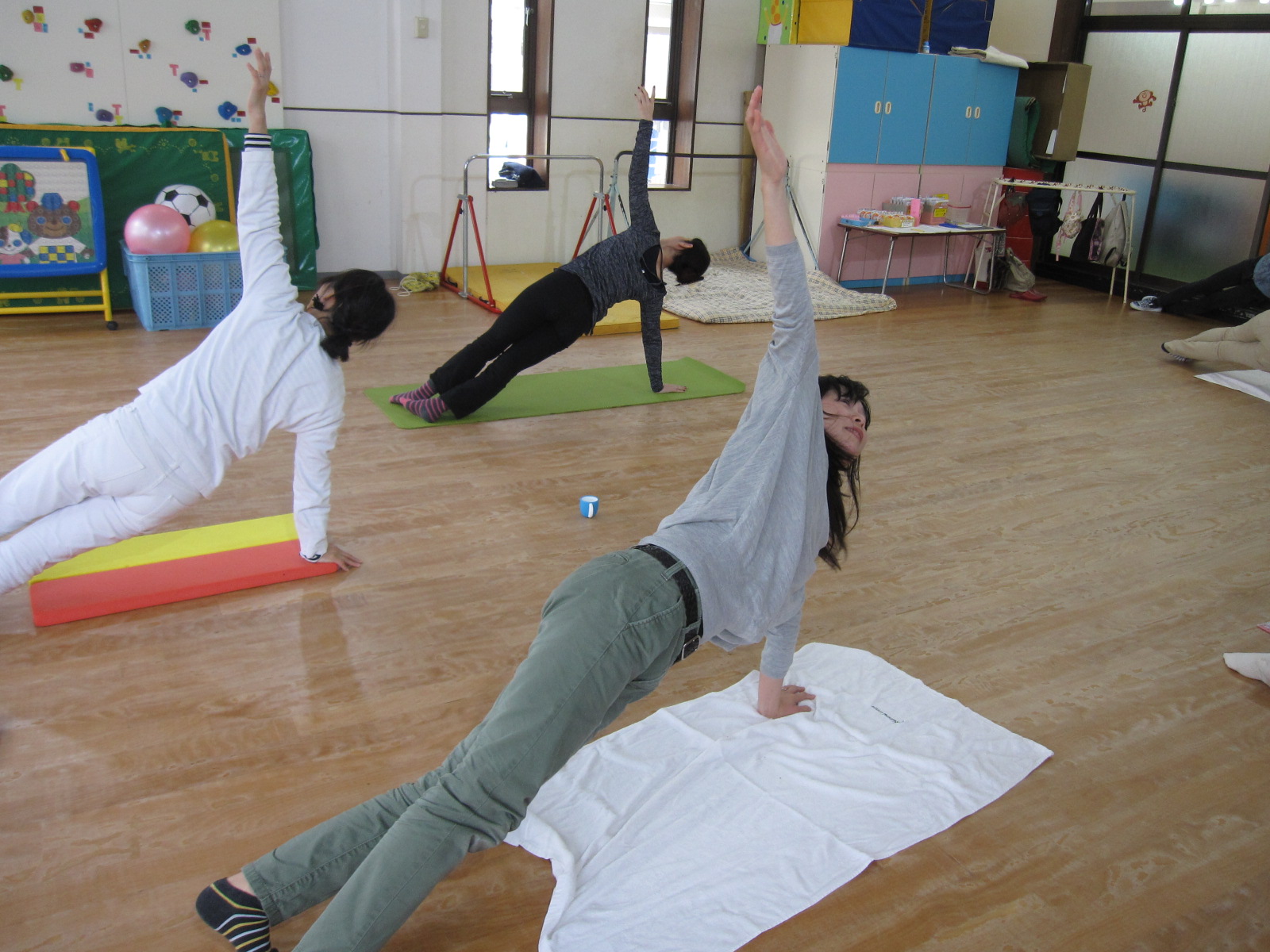 13 11月2017 0 「あんぱんまん教室☆ピラティス」 その他, 子育て支援・あんぱんまん教室 今日は、子育て支援あんぱんまん教室で定期的に開催されている、ママのためのピラティスでした。 先生のしなやかな体の動きに合わせて、全身からすっきり♪ ママたちがピラティスの間、隣の部屋ではままごと遊び中♡ ピラティスの後は、こどもたちの大好きなともこ先生の読み聞かせタイム~♪ ママもストレス発散して、子どもたちもいっぱい遊んで、おいしいおやつを食べて帰ります。 楽しかったね! またあそぼうね♪