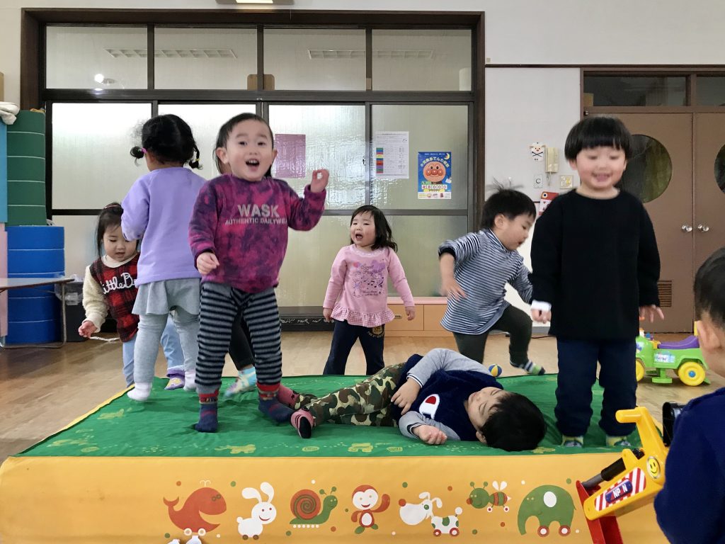 05 1月2018 0 クライミングにチャレンジ!! 子ども達の様子 あけましておめでとうございます! 今年もよろしくお願い致します。 新年もスタートし、元気いっぱいなすみれ組の子ども達! 今日はおゆうぎ室にあるクライミングにチャレンジしました★ 高さはさほどありませんが意外と難しいのです。 始めはクライミングの中段位までしか登れていませんでしたが・・・ 段々コツを掴み、一番上まで登り嬉しそうでした(^^) 子ども達はのみ込みが早いですね。 トランポリンでは「ジャンプ♪ジャンプ♪」と大興奮で楽しみました。 すみれ組の子ども達はおゆうぎ室で遊ぶのが大好きです❤