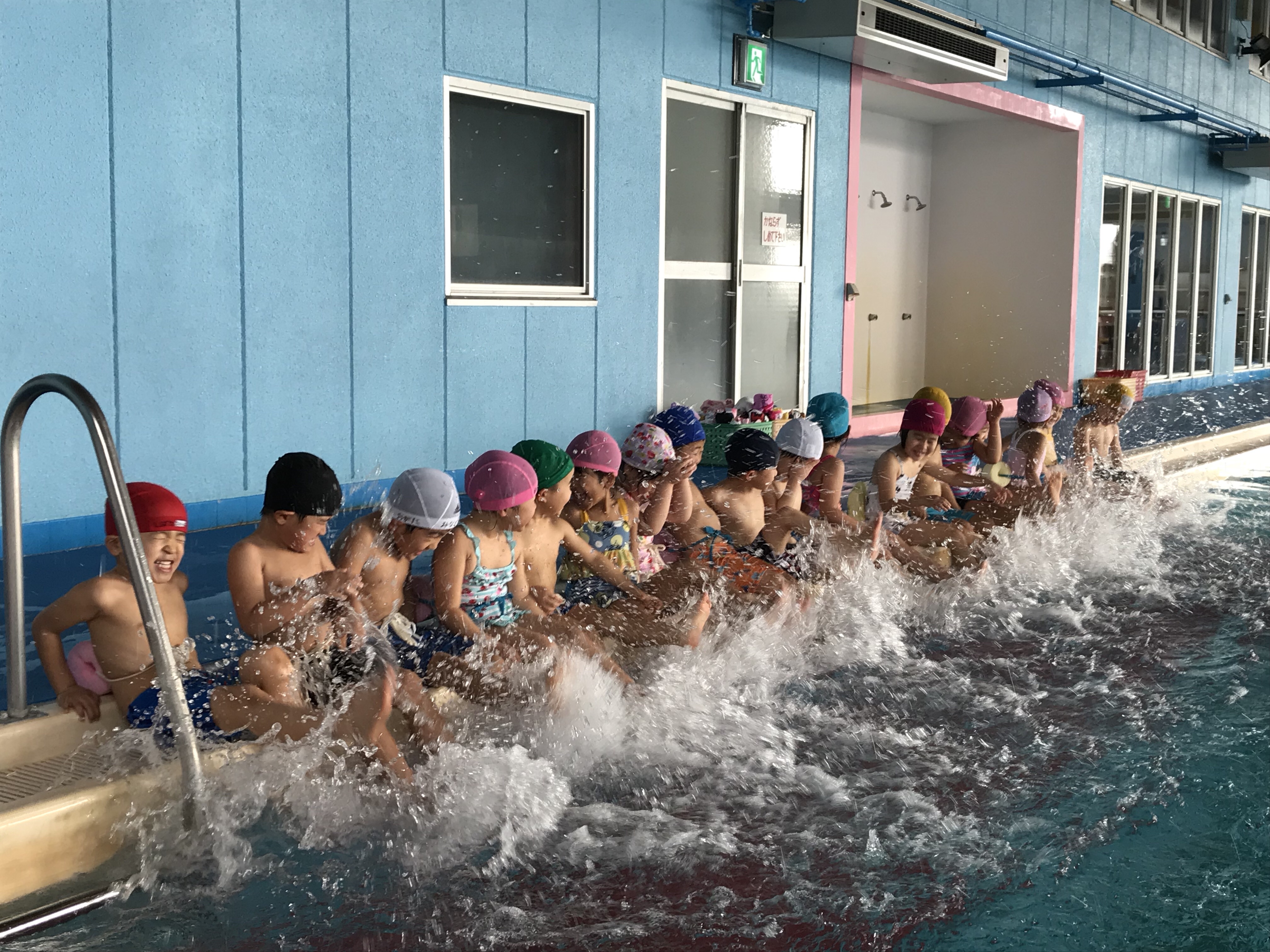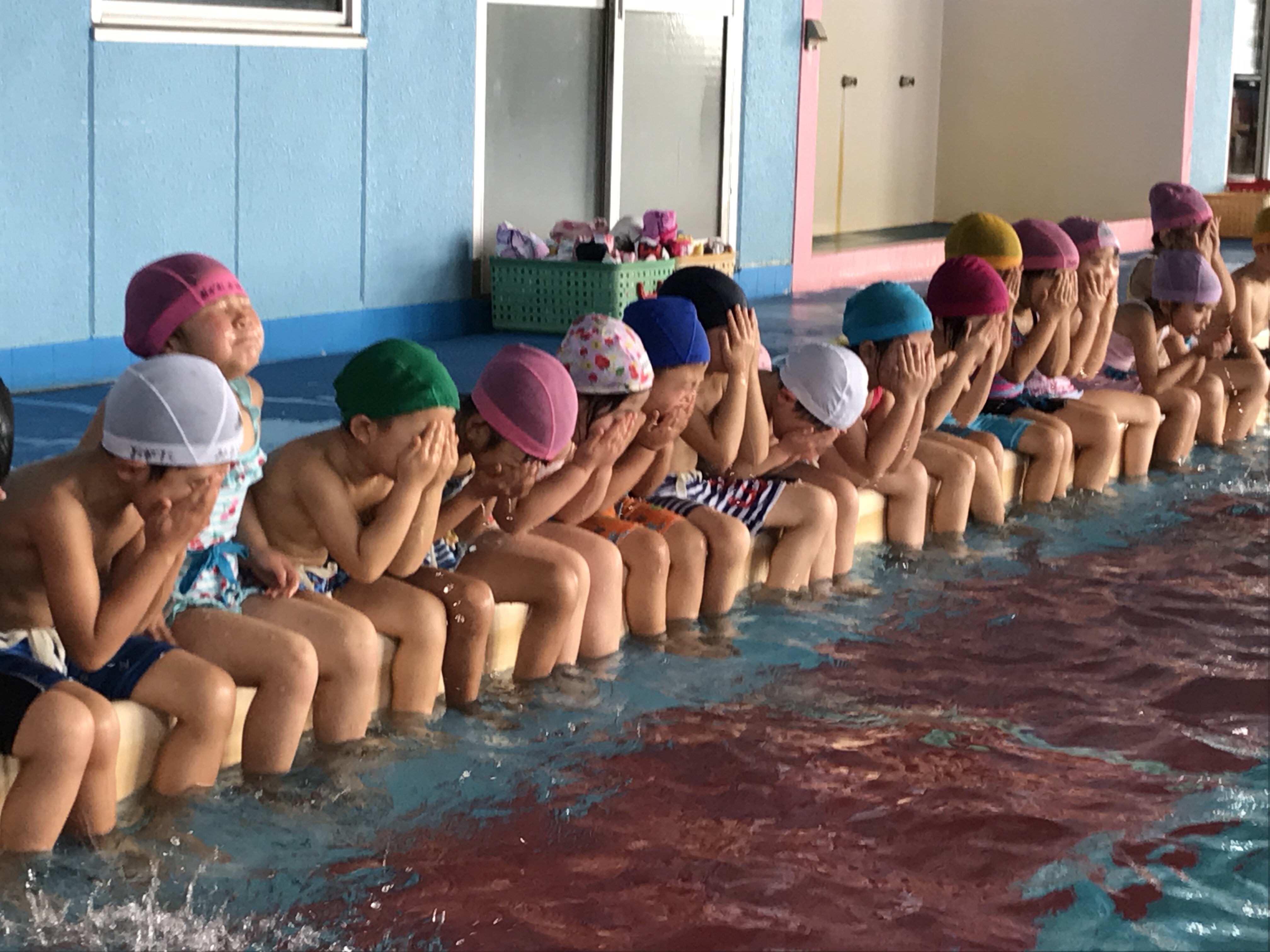 最初は苦手な子も多かった、顔を洗ったり、プールへの顔つけも上手になりました!