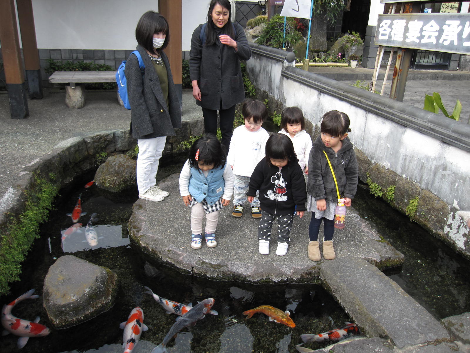 02 3月2018 0 「雛めぐり」に行ってきました☆ 子育て支援・あんぱんまん教室 今日のあんぱんまん教室は、「雛めぐり」でした。 商店街のショウウインドウに飾られたお雛さまをみんなで見に行ってきました! 清流亭で、鯉を見ました。 ガラスの床の下を鯉が泳いでいます。 みんなで、ちょっとおすまし♡ 紙粘土で作られているのだそうです!びっくり☆ 島原市の守護神「しまばらん」もいましたよ♪ 今日は、おひなさまと鯉としまばらんにも会えた楽しい一日でしたね! ありがとう♡