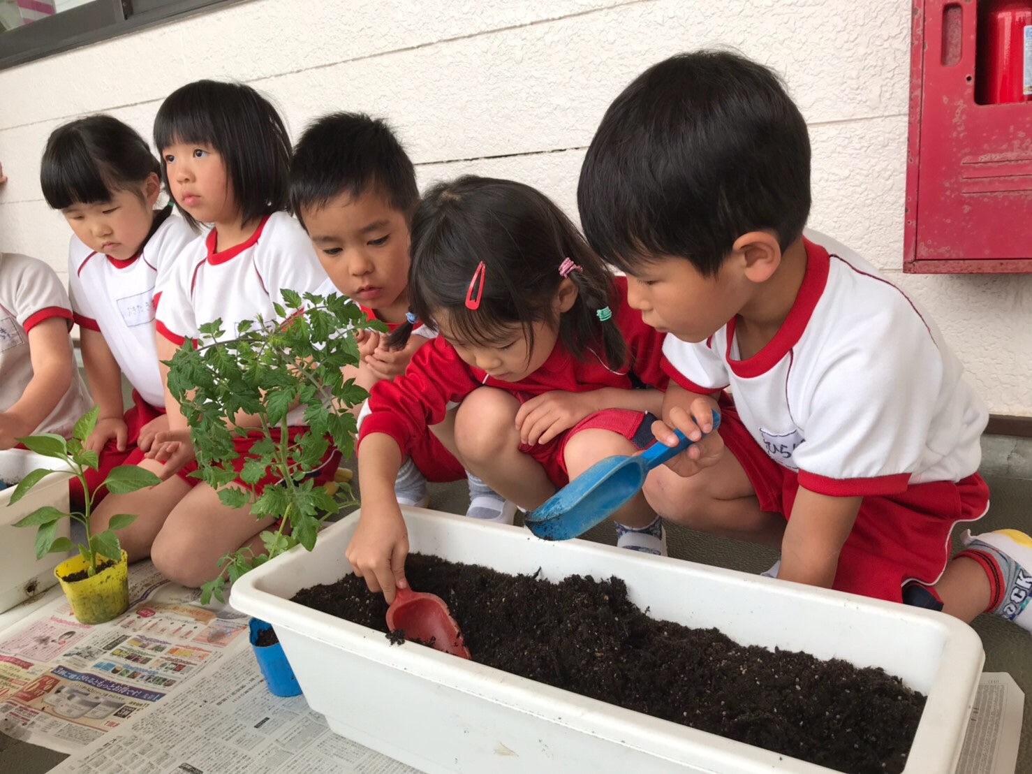 先週、野菜の苗植えをクラスごとに行いました!