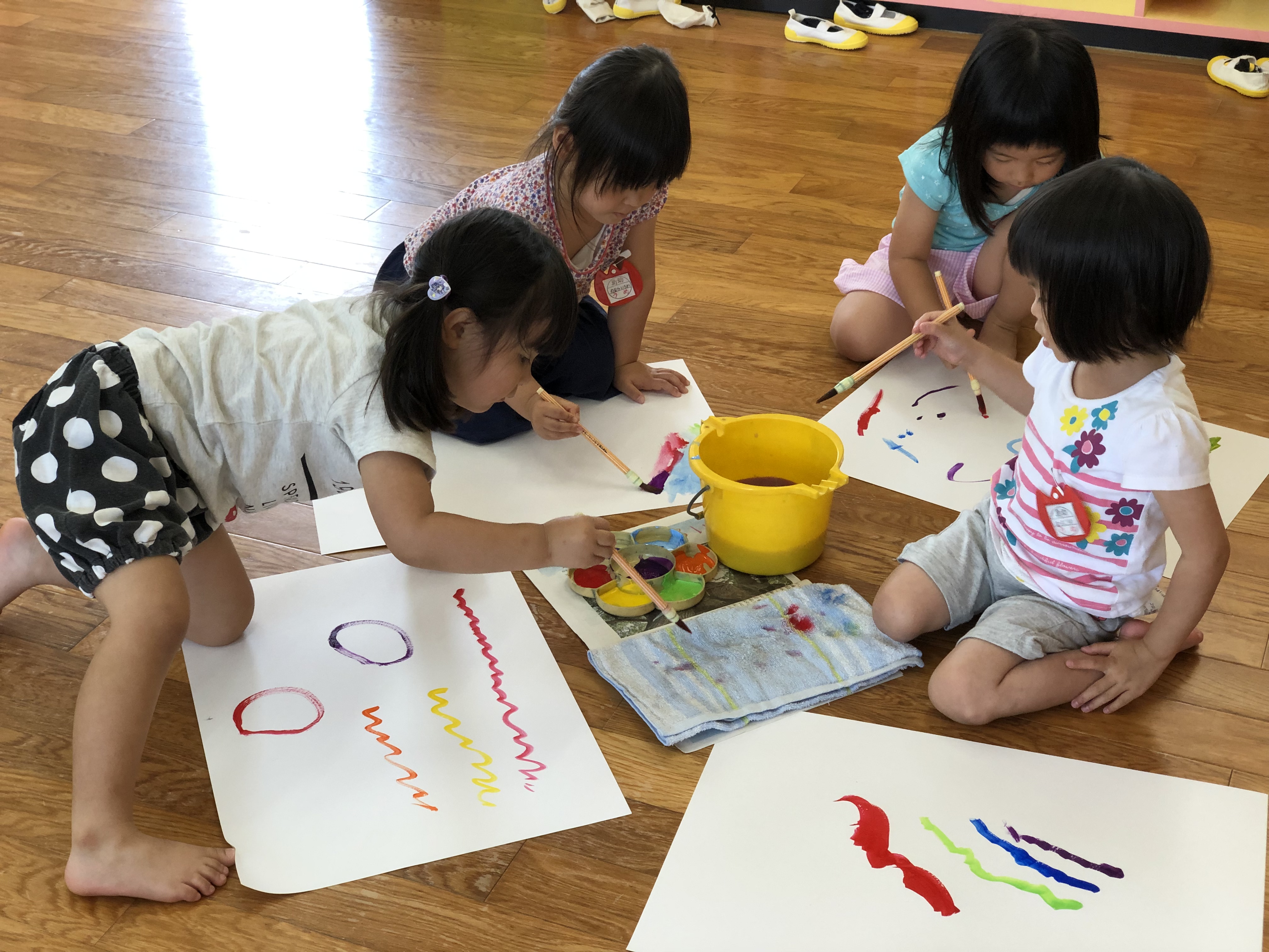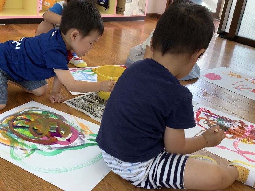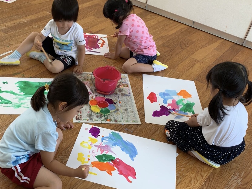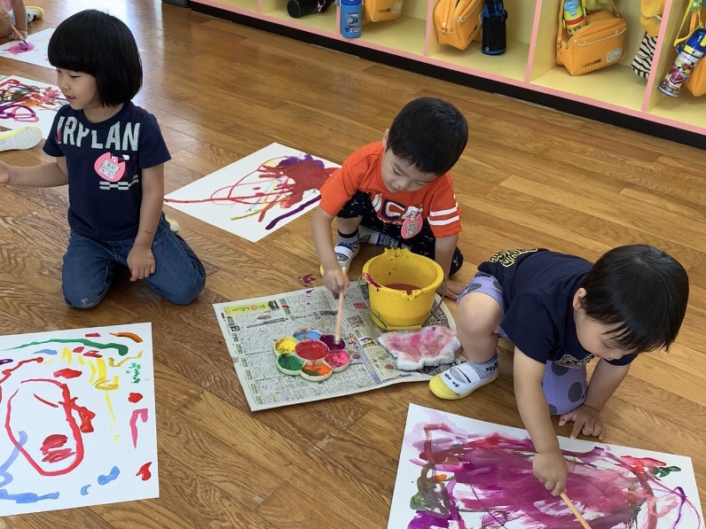 12 6月2019 0 年少 絵の具あそびをしました! 子ども達の様子 うめ、もも組では 初めて筆を使い絵の具遊びをしました꙳★*゚ 違う色に変える時は筆を洗って… 雑巾で筆をトントントン♪ 色の混ざった変化も楽しんでいました✩.*˚