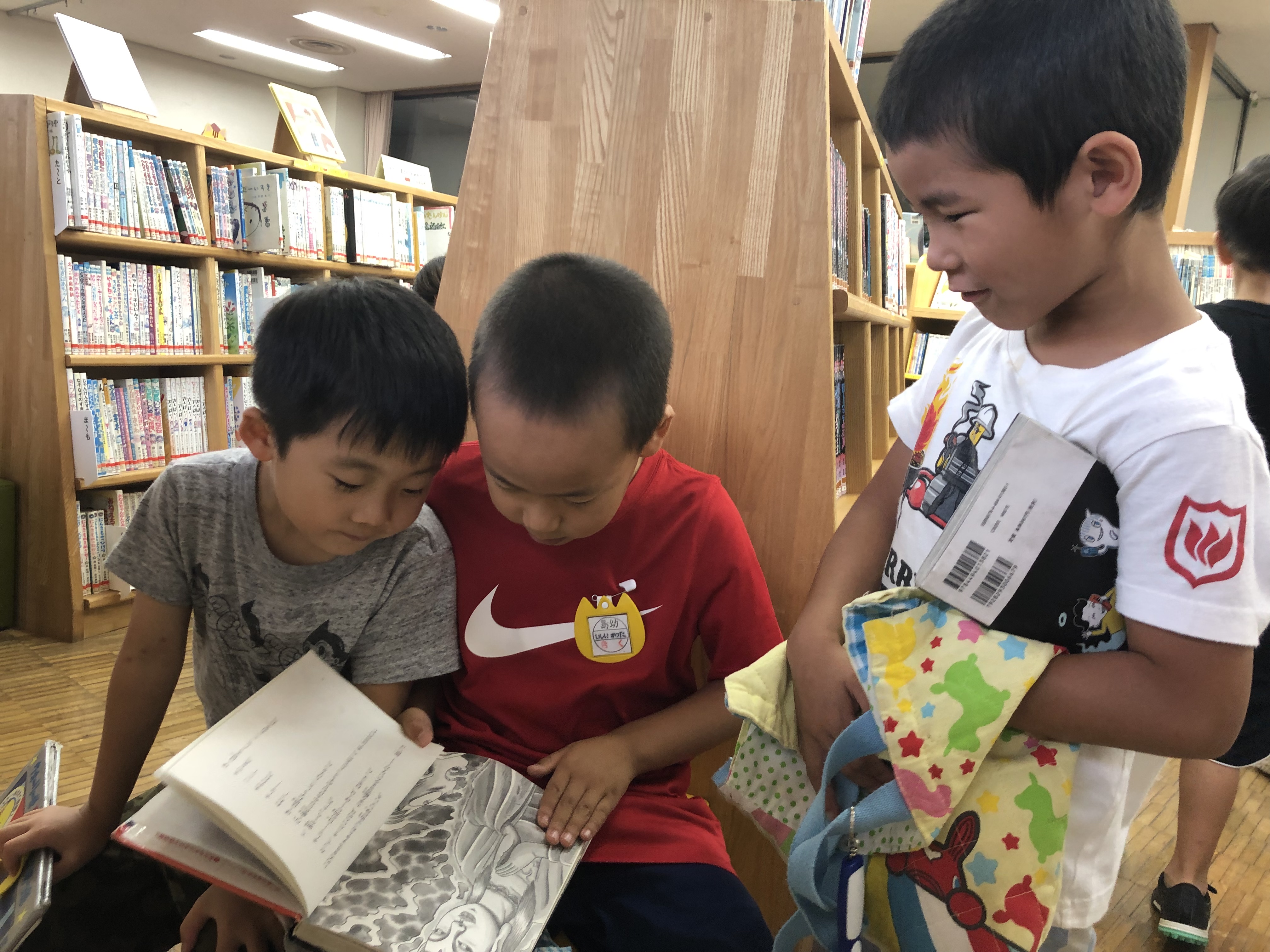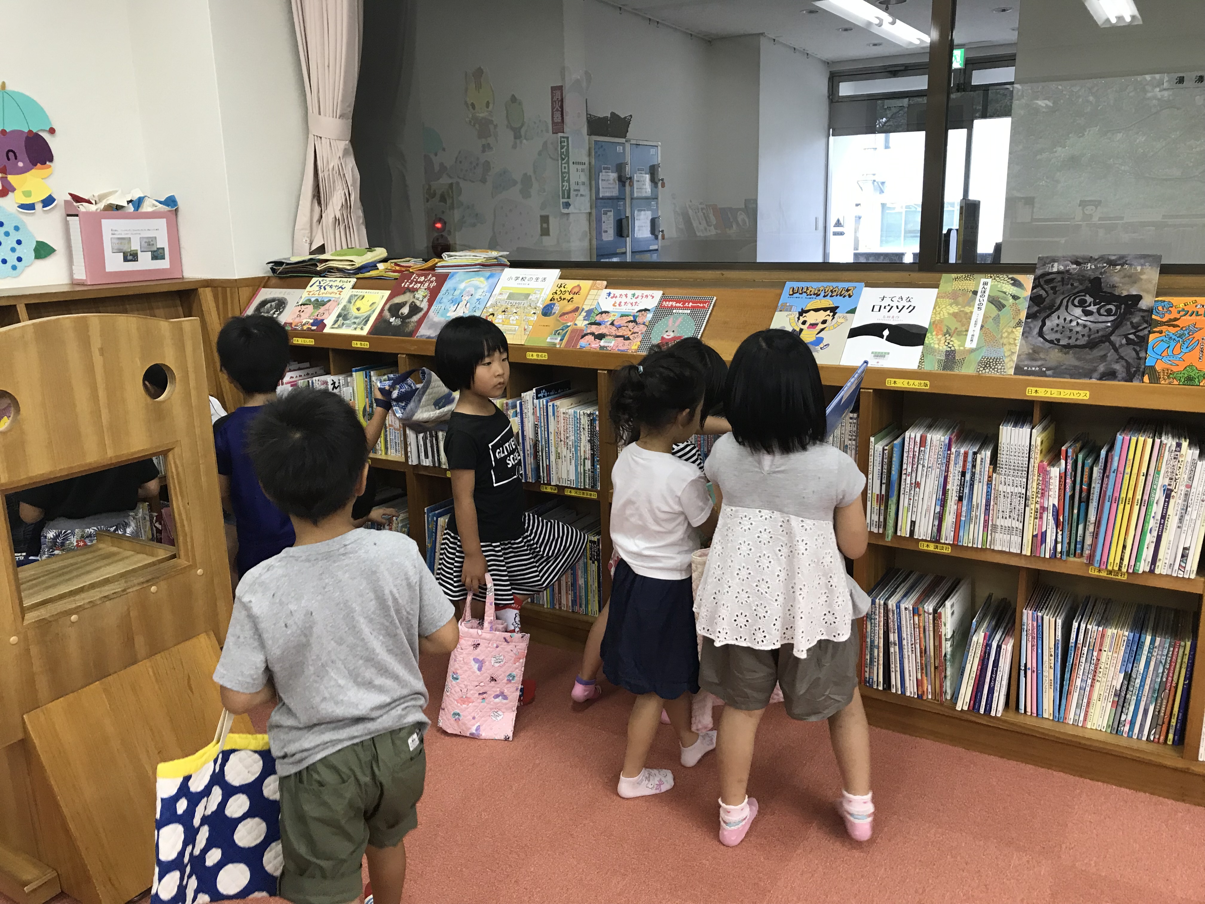 今日は年長きく・ゆり組でバスに乗って図書館に絵本を借りに行ってきました??