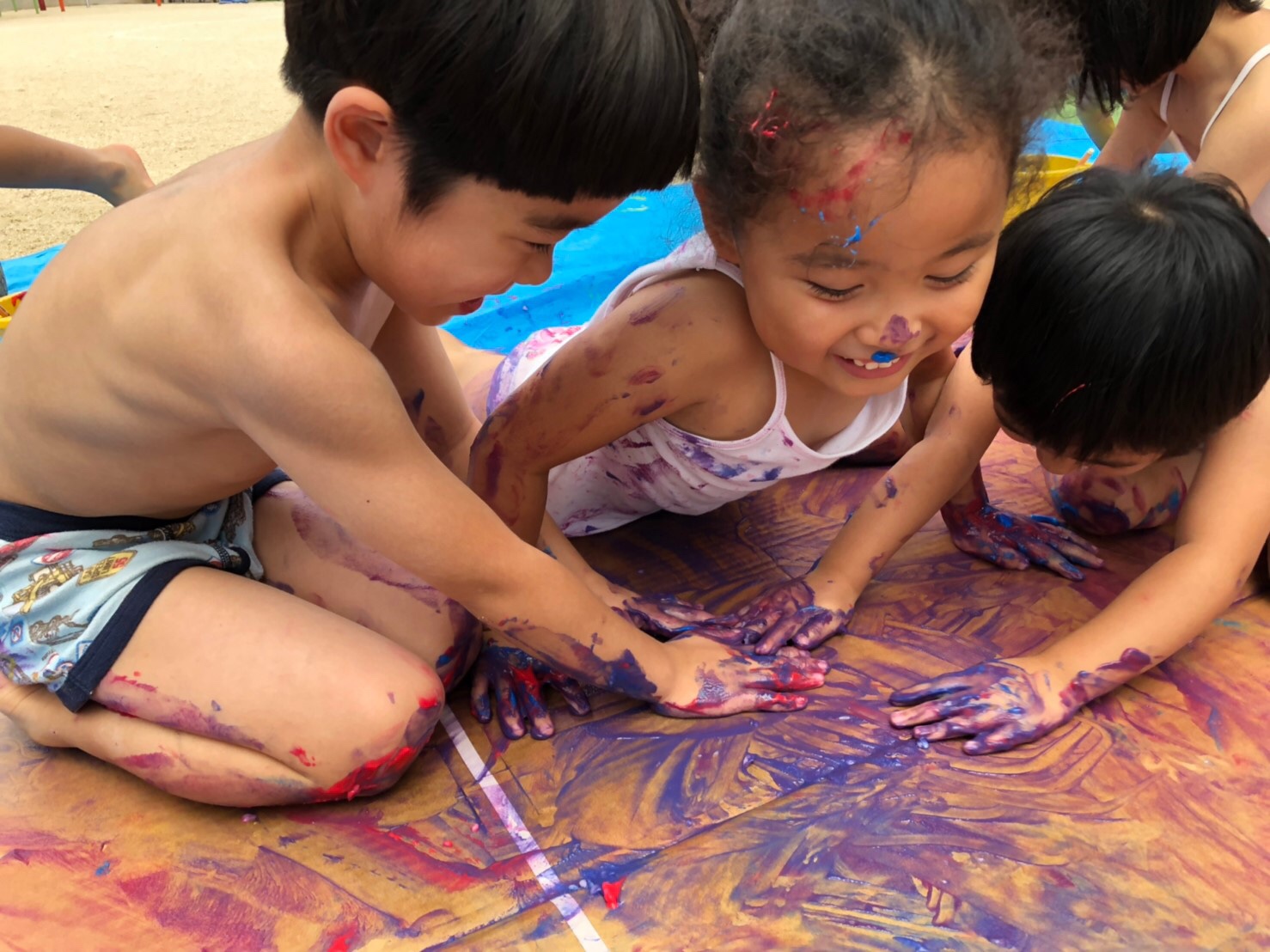 17 7月2019 0 ボディーペインティングをしました!! お知らせ, 子ども達の様子 先日、ボディーペインティングをして楽しんだ年中組さん☆ 大きなダンボールを前に大喜びの子ども達は 全身を使ってダンボールをカラフルに染めました♪