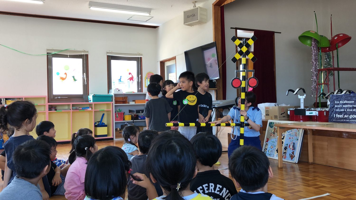 今回は道路の標識を覚えたり、線路の踏切の渡り方のお約束をしました✨