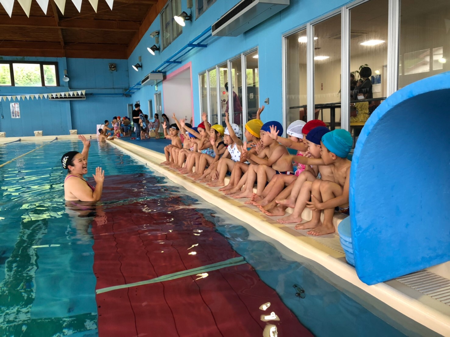 20 9月2019 0 年中組、初めてのスイミング!! お知らせ 年中さくら・ばら組さんは今日、初めての スイミングに行ってきました? 水遊びとは違う深いプールが怖くて 少し涙が出ちゃうお友達もいましたが 最後にはみんなにこにこ笑顔で 終える事が出来ました✨ これから月1回のスイミングが楽しみです?♂️