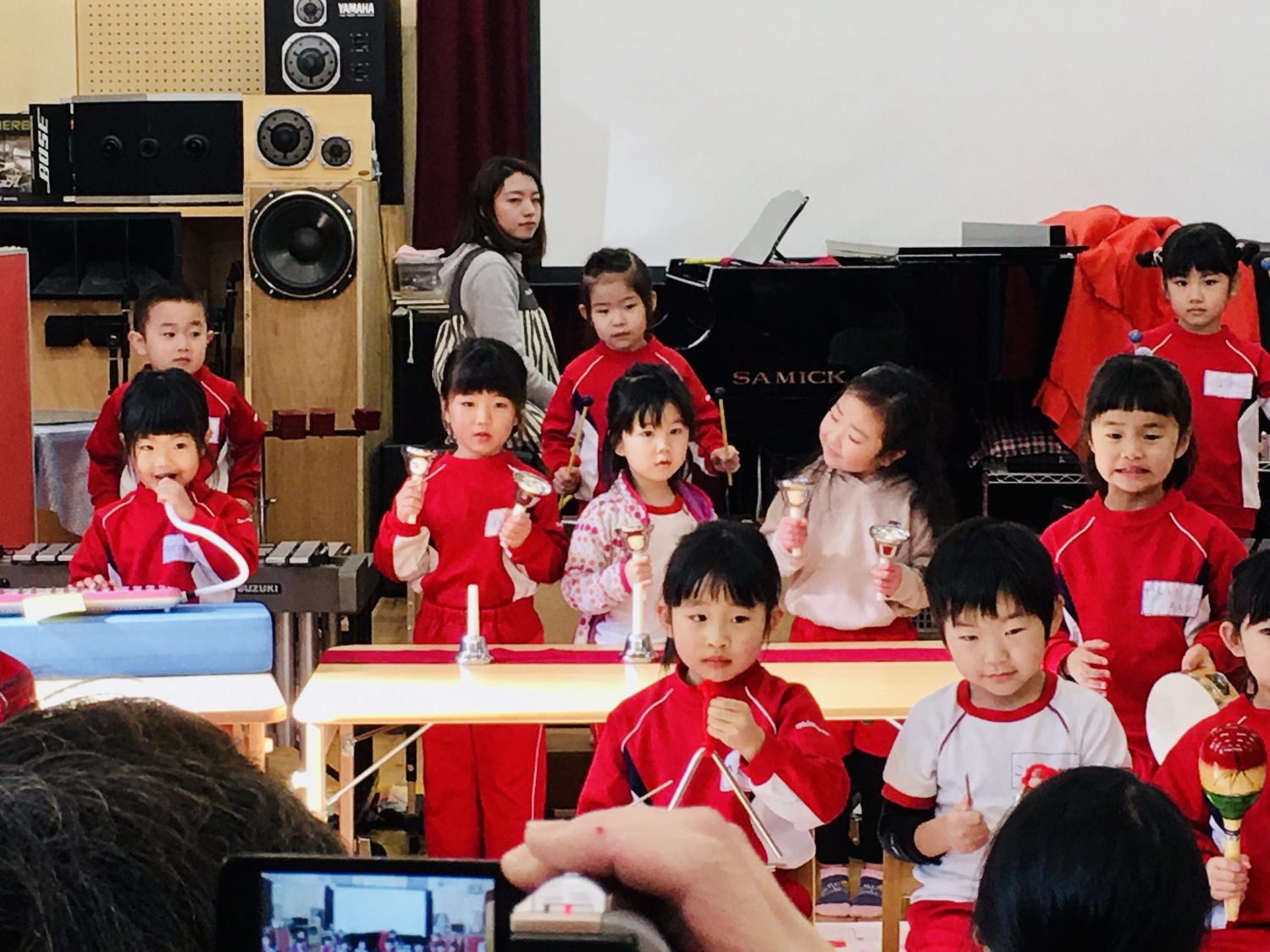 最終日は年中さん、?音楽室で自分の好きな楽器を選んで、合奏と歌をお家?の方の前で披露して