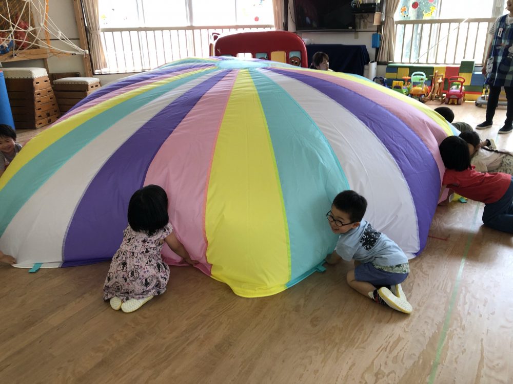 11 6月2020 0 年中組、パラバルーンしました? お知らせ, 子ども達の様子 先日、年中さくら・ばら組さんはパラバルーンをして楽しみました? まずは大きく膨らましてドーム作り? ボールを入れて飛ばしたり、、、 お山を作って崩したり、、、 大きなバルーンに大はしゃぎのさくら・ばら組さんでした✨
