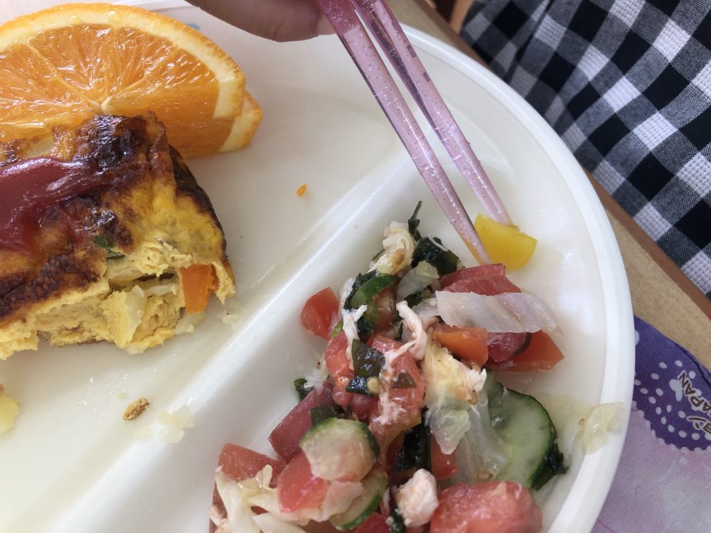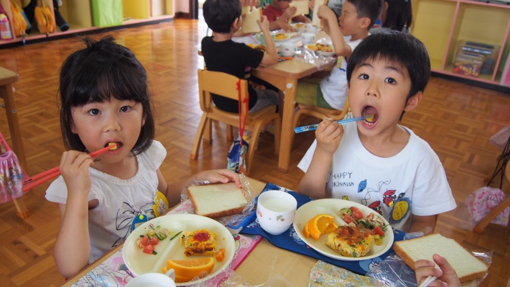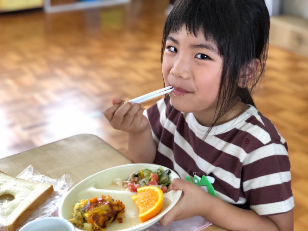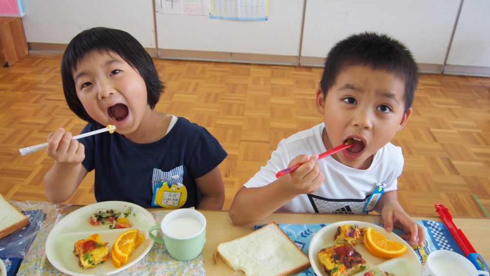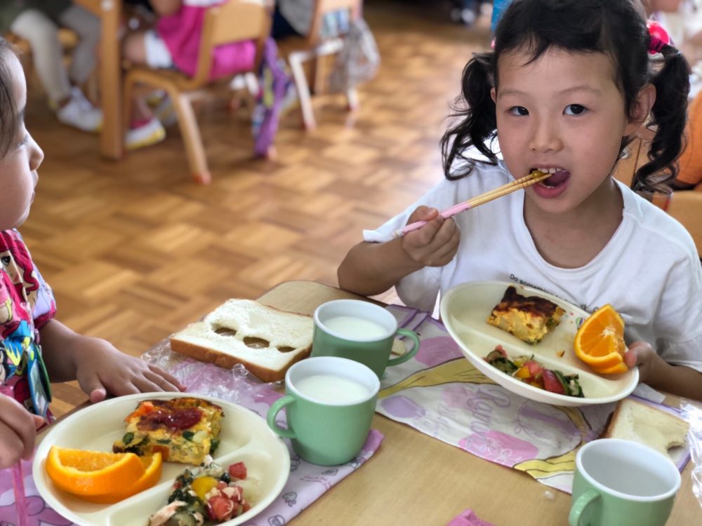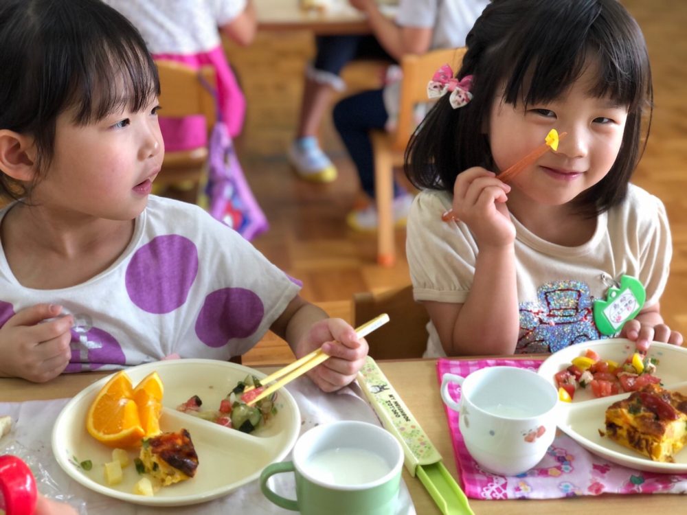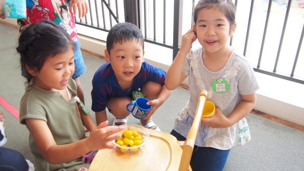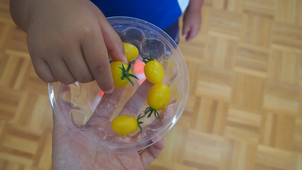 給食のサラダに入ったトマトを見て大喜びの子どもたちでした♪