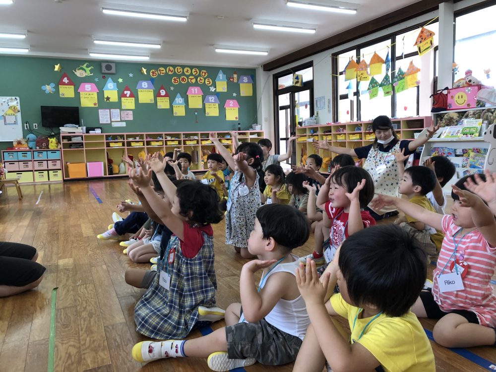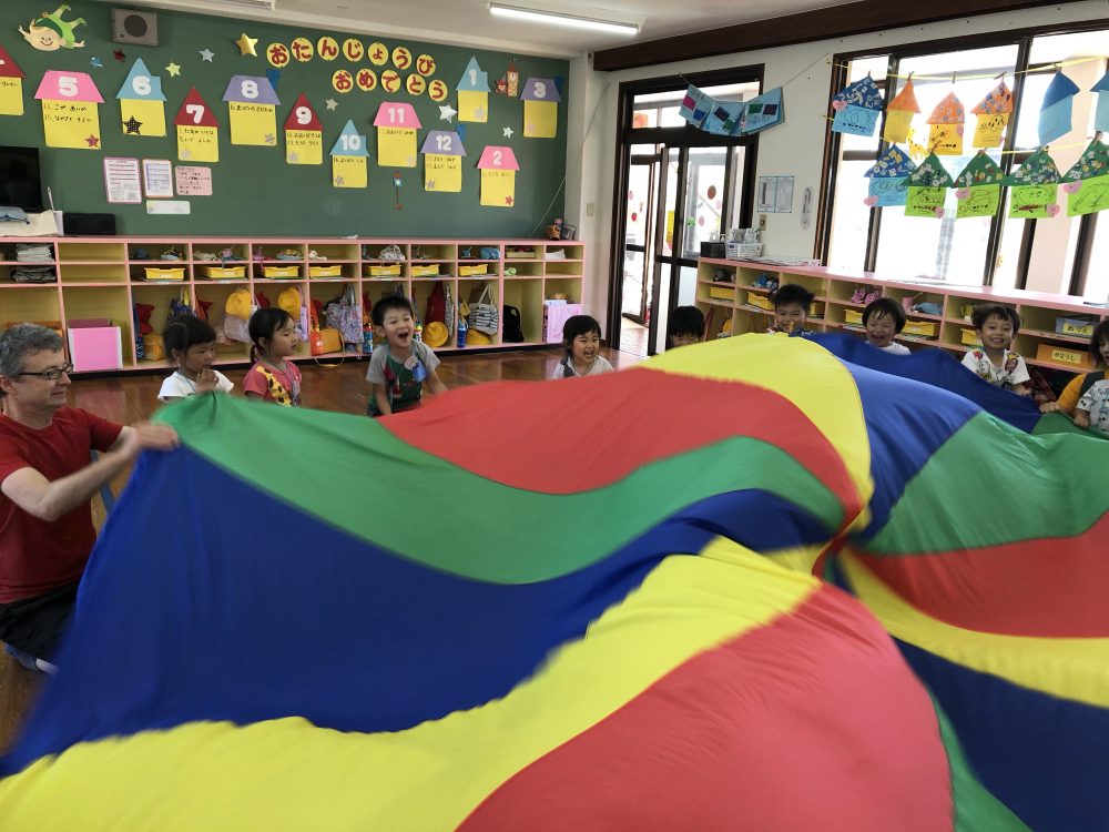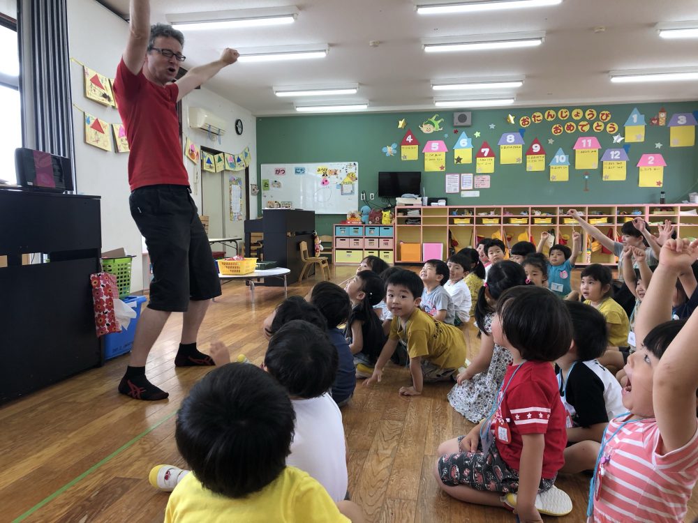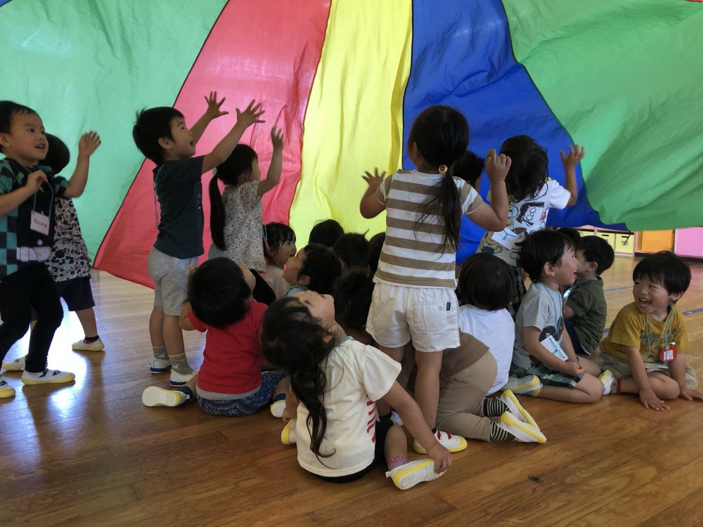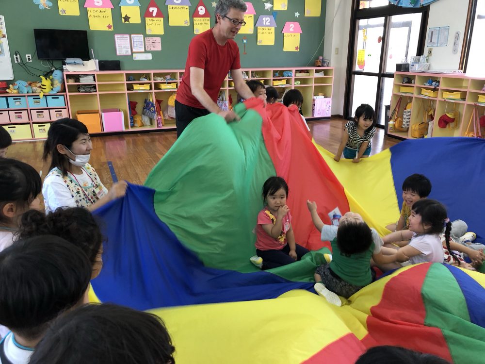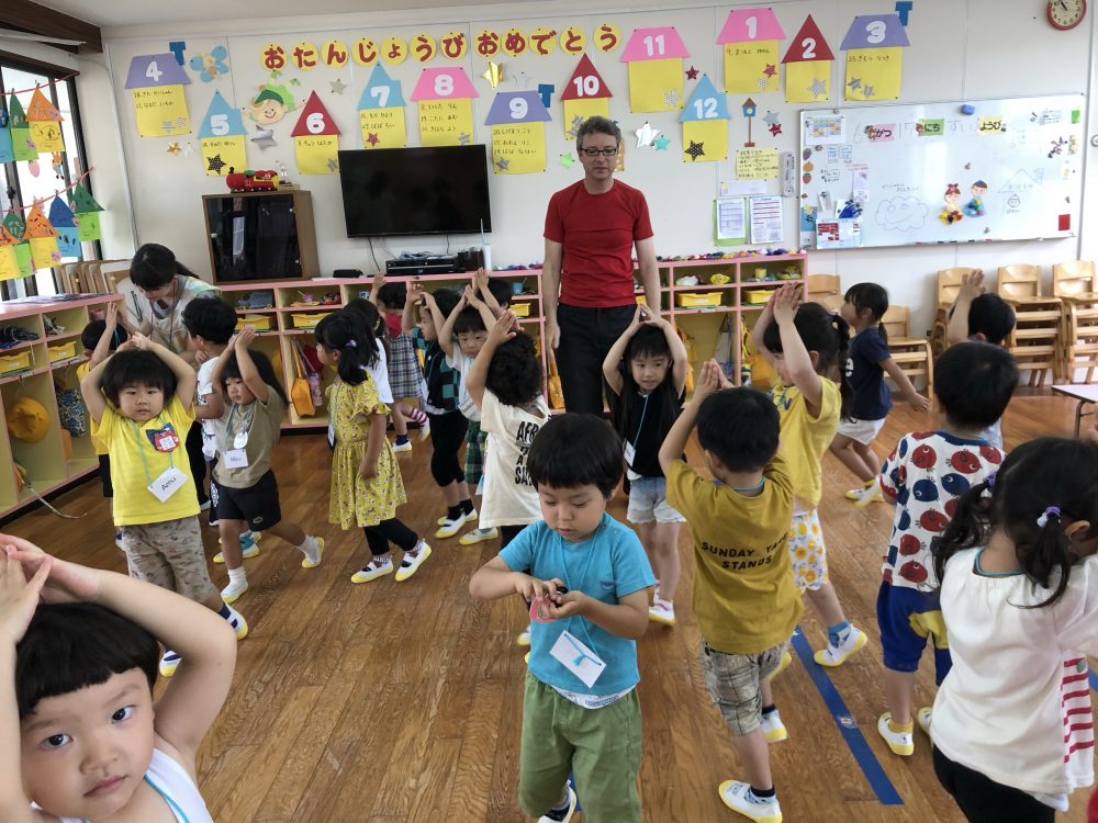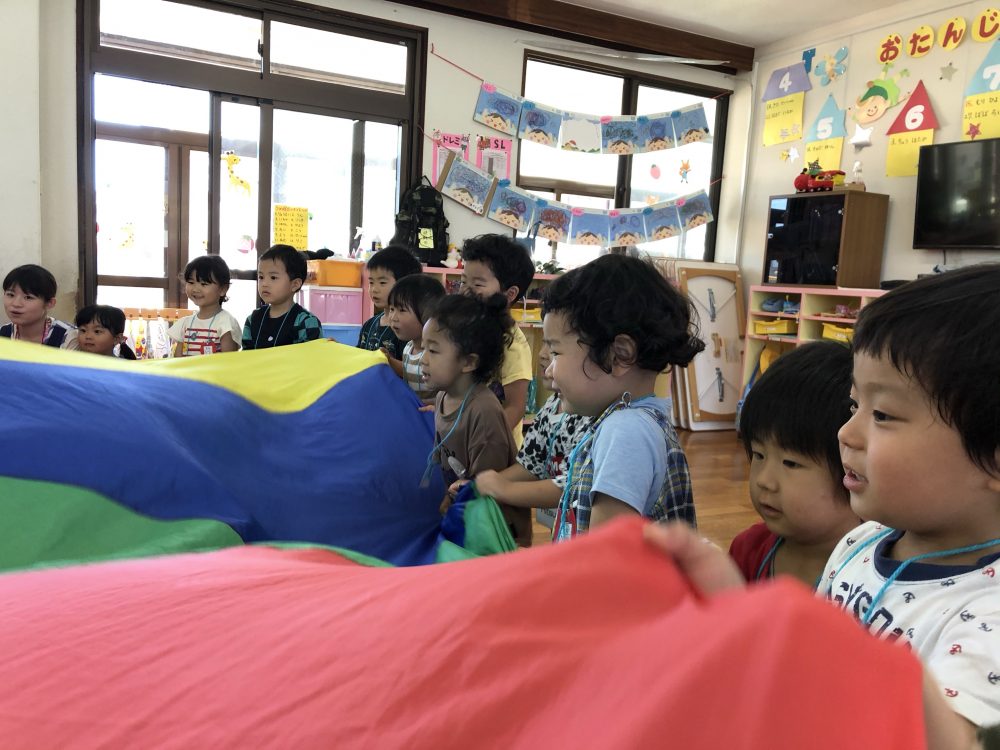 19 6月2020 0 年少?えいごであそぼう お知らせ 月に2回のアラン先生のえいごであそぼうを楽しんでいます!! まずは歌や簡単な英単語を言いながら、なりきって表現あそびを楽しんでいます? 最後にはバルーンやカラフルなリボンを使って体を動かし、子供たちも大喜びでした?