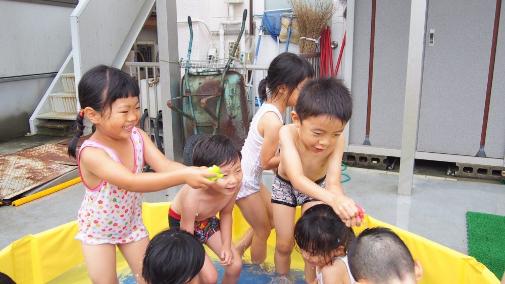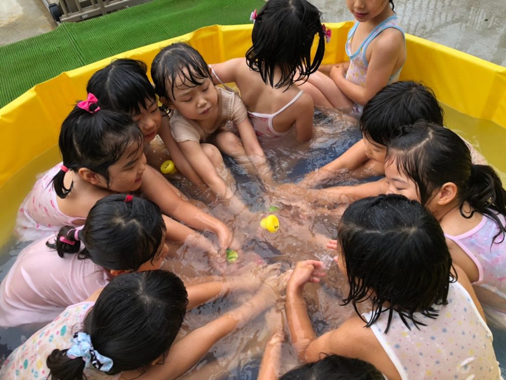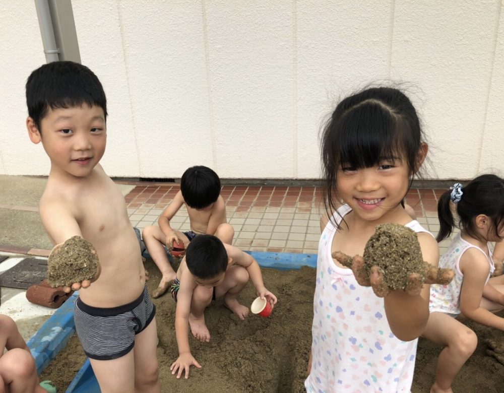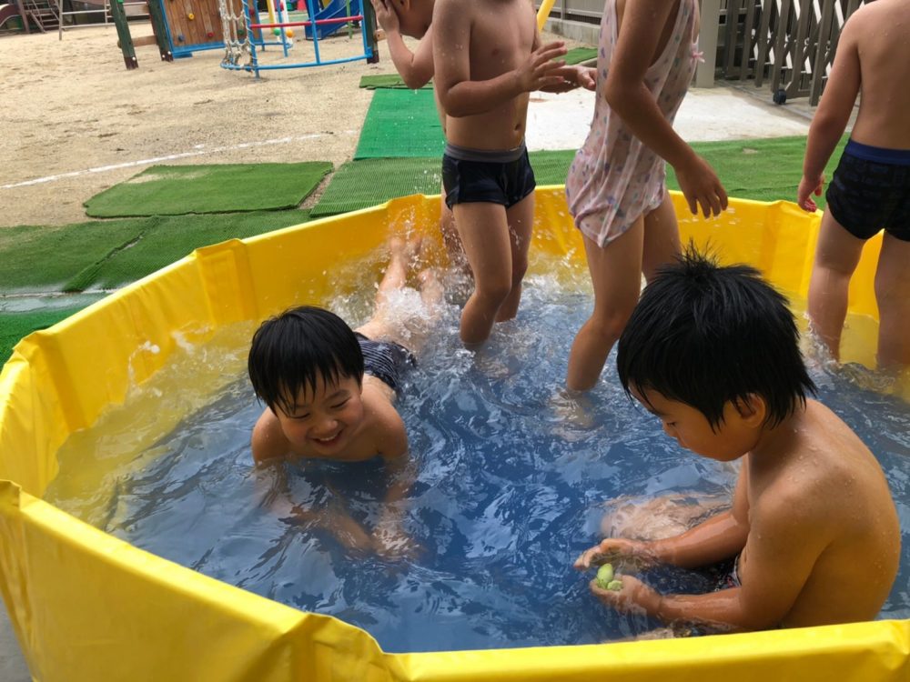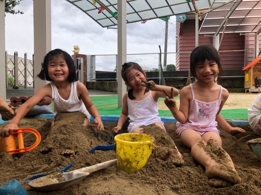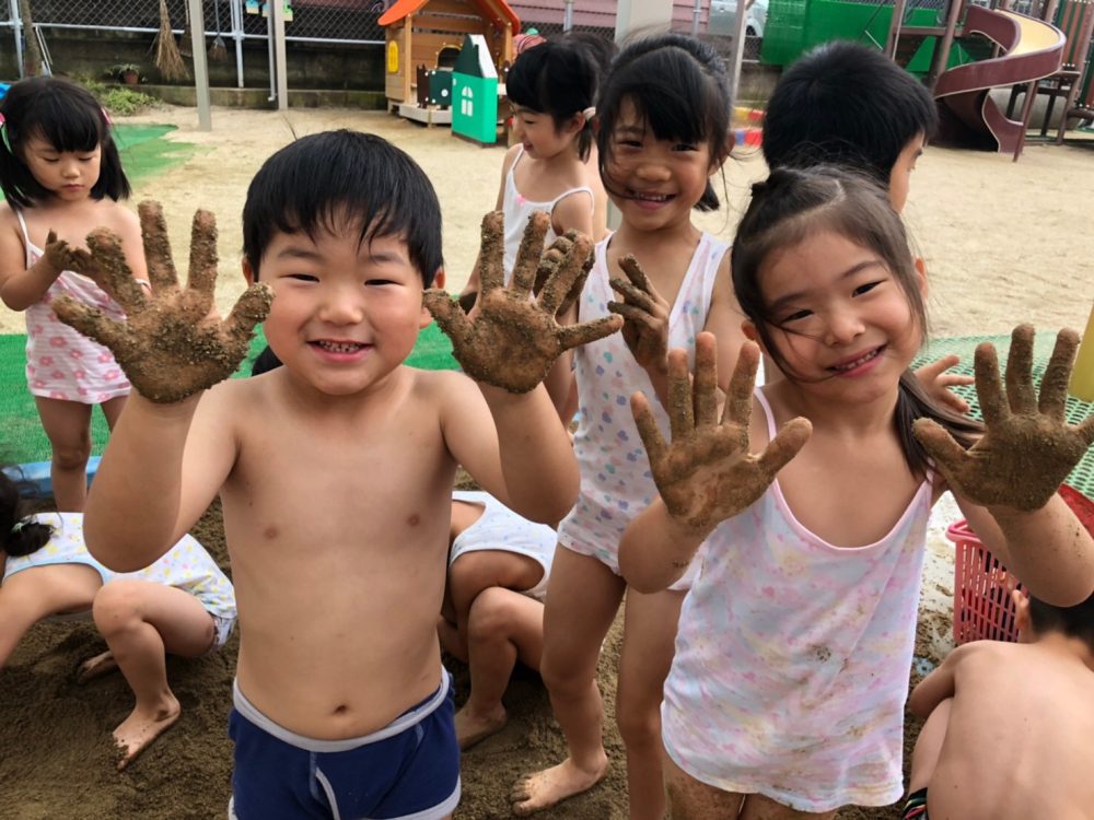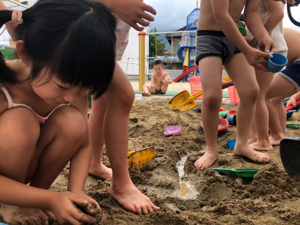 大雨の日が続く中、梅雨の合間を使ってどろんこ遊びと水遊びをしました‼︎