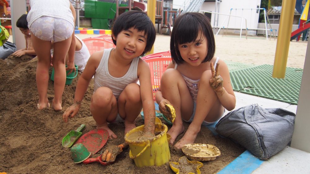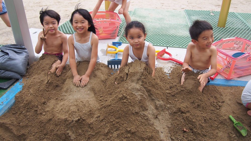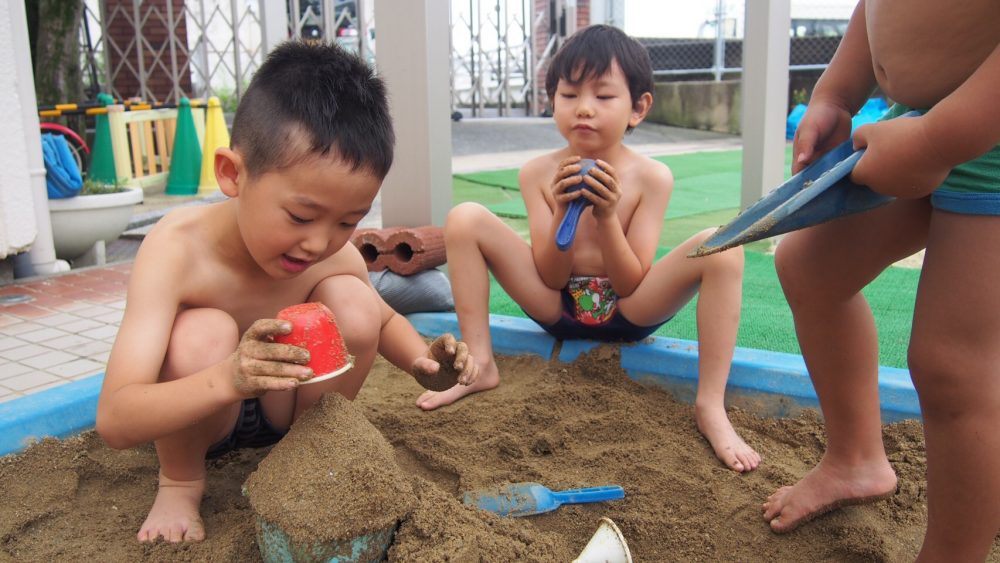 バケツにいっぱい砂を詰めて、かき氷〜と嬉しそうにしたり?