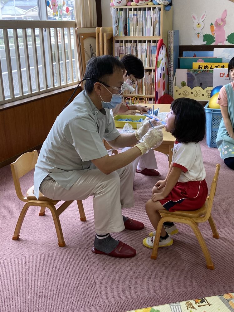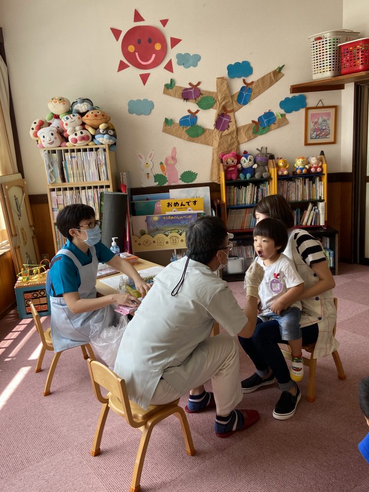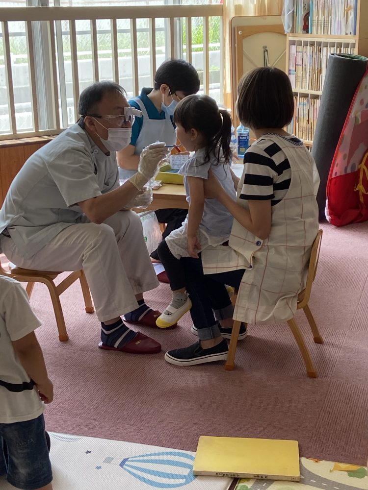 今年度は、コロナウイルスの影響でいつもより遅れての検診を3日間かけて園歯科医の松田先生に診ていただきました。