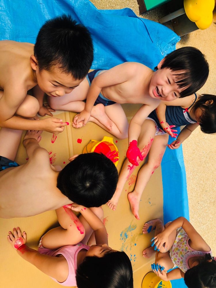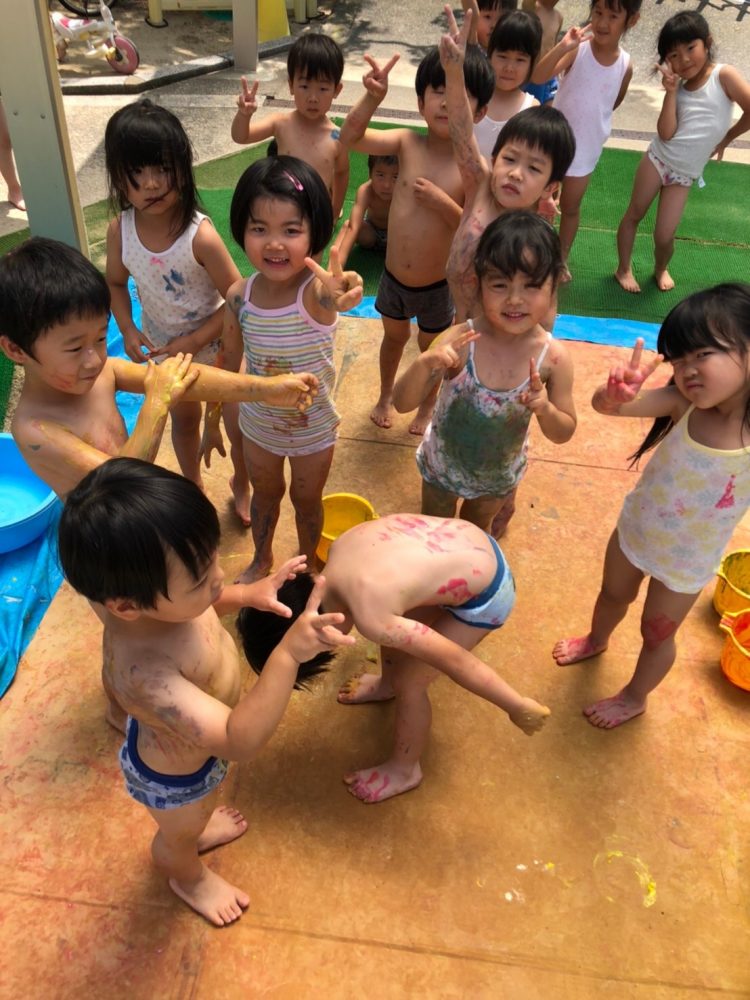 お友達や先生と一緒に、身体にもいっぱいつけて…面白かったね⭐️