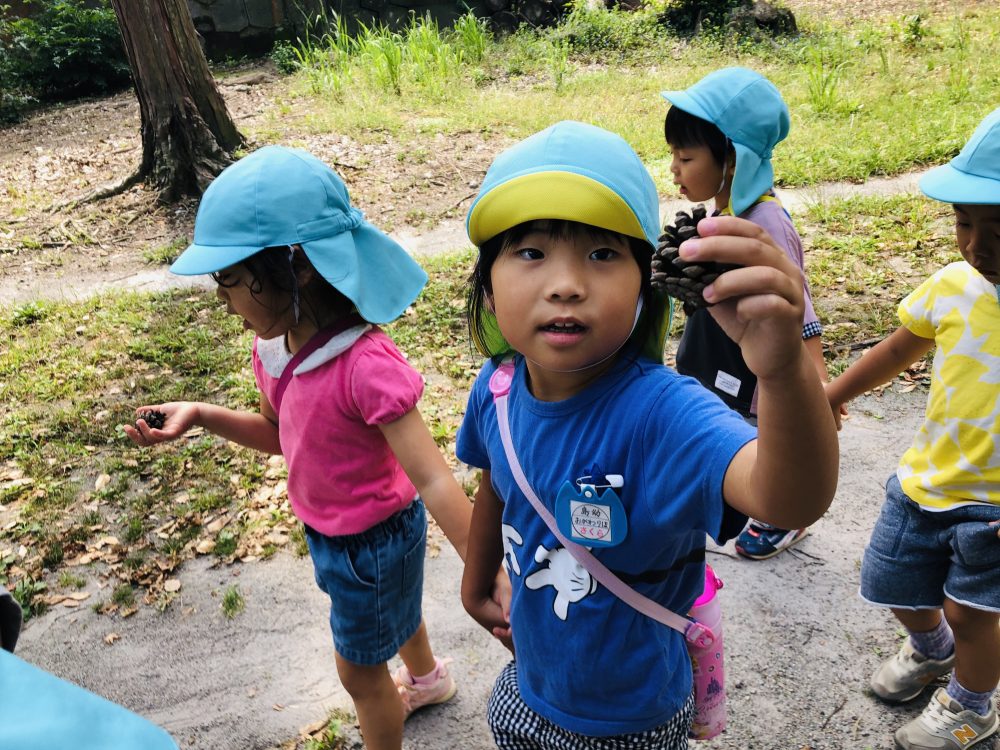 霊丘公園の敷地にはどんぐりとまつぼっくりがいっぱい‼️まつぼっくりを見つけた途端に「まつぼっくりがあったとさ〜」と歌い出す子ども達🎶