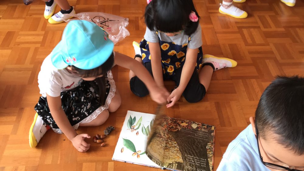 帰ってからは子ども達、自ら図鑑片手にどんぐりの種類を調べ始め「これかな〜?」「これじゃない?」と楽しそうな会話が飛び交う年中組さんでした📚✨