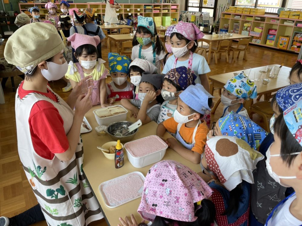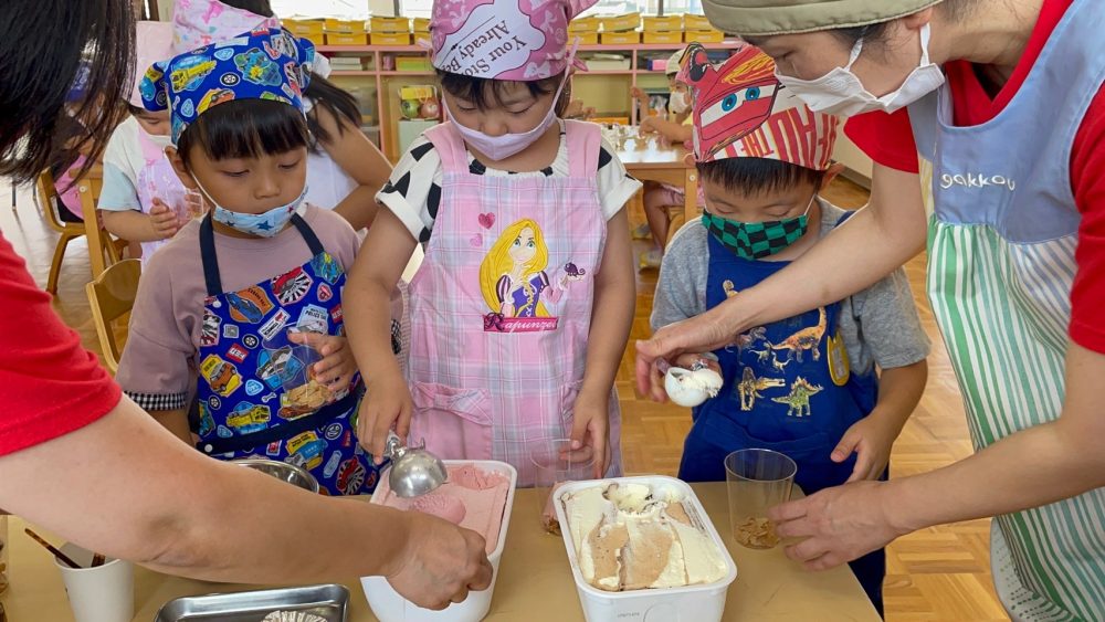 おやつは冷たいアイスを使ったパフェ作り‼︎