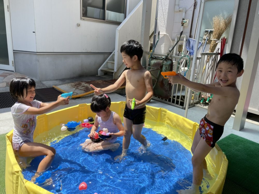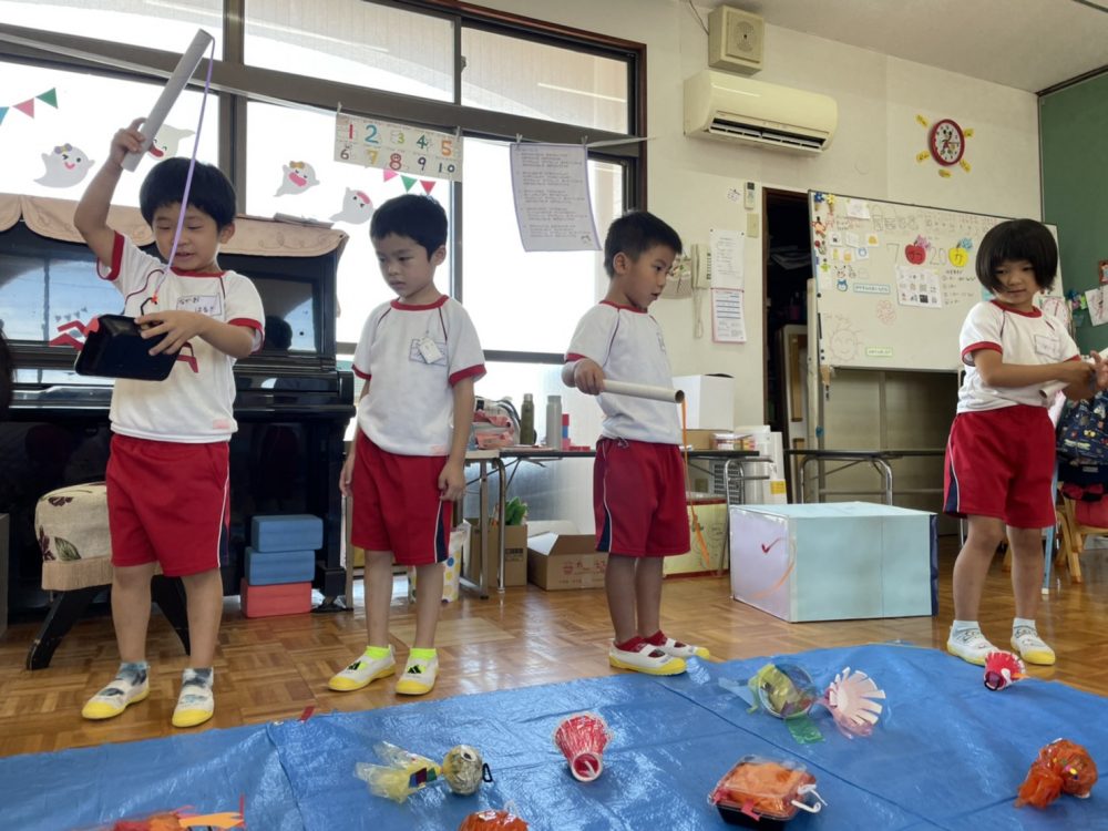 自分たちで作ったおもちゃで遊んだり、水遊びで汗を流したり…
