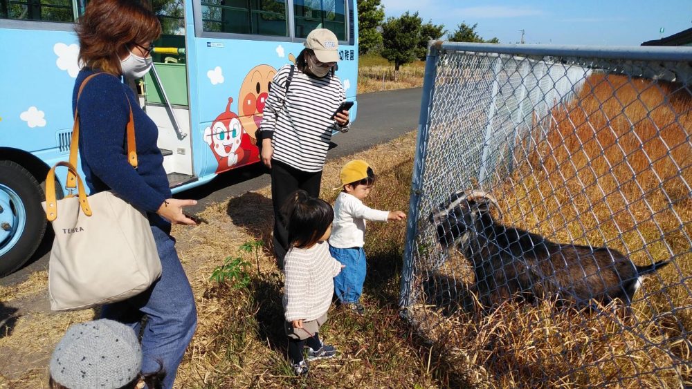 09 11月2021 0 ドライブへ🚌行きました! 子育て支援・あんぱんまん教室 11月5日 深江の桜パークへ出掛けました。バスの中では、海が見えると「うーみーは、ひろいーなー♪」と歌いながら・・・ 途中 やぎさんを見て! 子どもたちは大喜びでした。