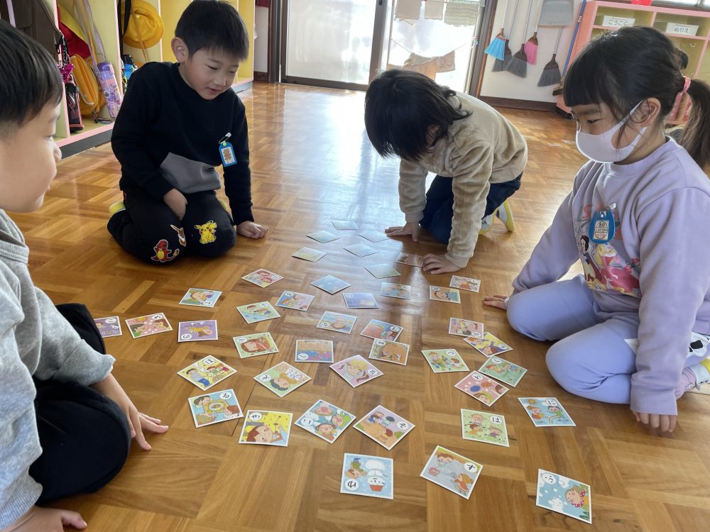 20 1月2022 0 年中組、お正月遊びをしました✨ 子ども達の様子 先日、年中さくら組さんはお正月遊びをしました🎍始めはみんなでカルタを楽しみ、、、中にはかるたを取れなかったお友達に渡してあげる優しいお友達も💕 その後、自由にはねつき、とんとん相撲、こま、だるま落とし、福笑いなどをして楽しみました!!