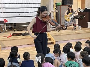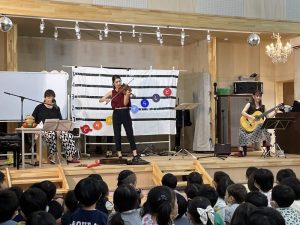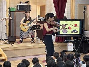 6月5日、音楽室にてコンサートを開きました。今回のゲストは「ネオ ハイクラッド」の皆さんをお招きして、ヴァイオリン、ギター、パーカッションの素敵な音色に包まれました。