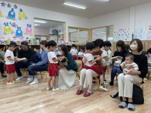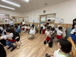6月6日、4歳児さんの保育参観でした。ファミリーデーを兼ねてこどもたちからおうちの方にプレゼントをしました
