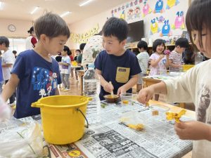 絵の具とは違った、自然の色ならではのあそびが出来て面白かったね🍋