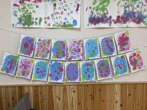 あじさいが完成したら、大きな紙に自由にみんなでスタンピング(^^)