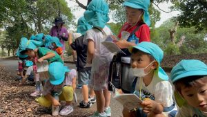 先日、年中さんは芝公園へお散歩に行き、秋をたくさん見つけました。