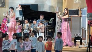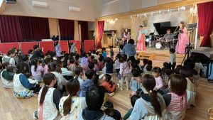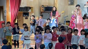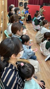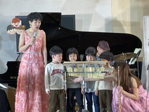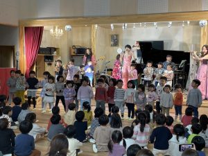 26 2月2024 0 園内コンサート 子ども達の様子 26日、ファンファンプラスさんによる フルート、ピアノ、ベース、ボーカル、ドラムの楽しいコンサートが開かれました 楽器体験と楽曲に参加した子どもたち 流行の音楽にタンバリンで参加する子どもたちと踊り、歌で参加する子どもたちもセッションしましたよ! あんぱんまん教室の親子の皆さんも楽しまれていました 今回、子どもたちが参加して、音楽家の皆さんと一緒に楽しい時間を共有できたことが何よりでした ありがとうこざいました