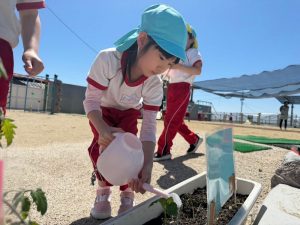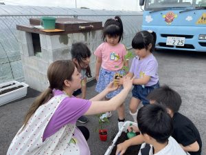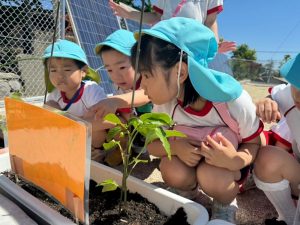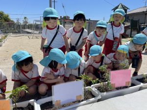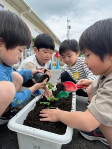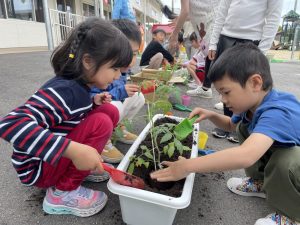 大事そうに苗を持ち、「大きくなあれ」とそっと土をかける子どもたち☺️