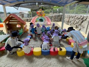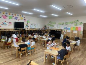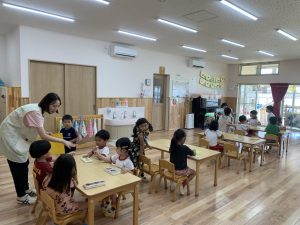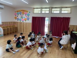 8月22日(木)始業式を行いました。久しぶりにみんなが揃って、「プールや海に行ったよ」「花火をしたよ」「おじいちゃん、おばちゃんに会いに行ったよ」と、夏ならではの体験をたくさん聞かせてくれました。