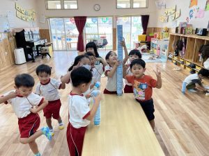 暑い夏、お部屋で楽しく過ごそうと、何やら面白い遊びを発見したさくら組さん👀