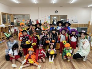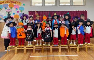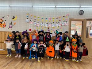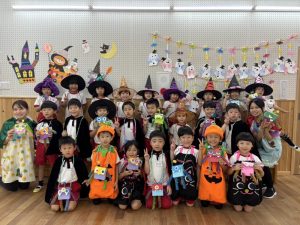 仮装がとっても似合って可愛かったです☺️他にも各学年ハロウィン製作や、年中・年長さんは仮装してお菓子(折り紙で作った)の交換ゲームなどして、ハロウィンの行事を楽しみました✨