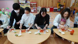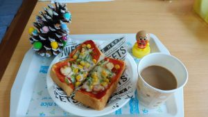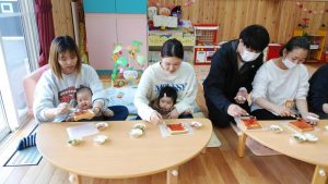 27 12月2024 0 子育て支援・あんぱんまん教室 あんぱんまん教室でピザトーストを楽しく作りました。 栄養士の先生から、ピザトーストの作り方の説明があり、皆で楽しく作りました。 オーブンで焼いてもらい、アツアツの美味しいピザトーストが出来上がりました。 皆で作って食べるとおいしいですね。 ごちそうさまでした。😊