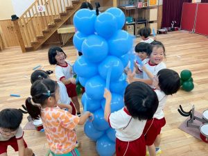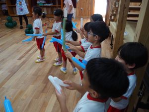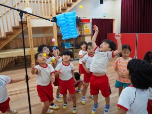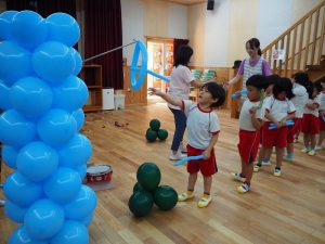 その後も「何の楽器の音?」ゲームをしたり、バルーン玉入れやバルーン通しを楽しみました⭐︎