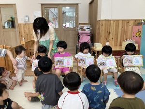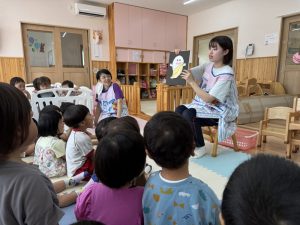 その後は『大きくなったら』という紙芝居を見て、子ども達も「大きくなったらエルサになる〜!」や「消防車になる!」と夢を膨らませていました☺️