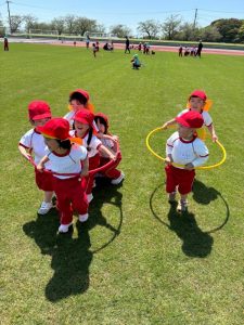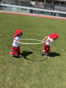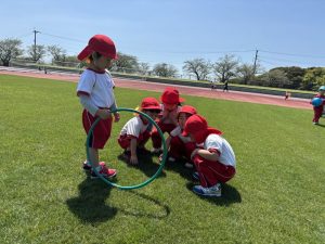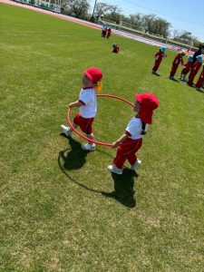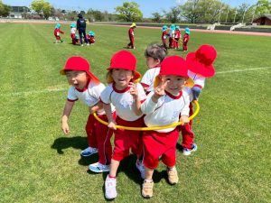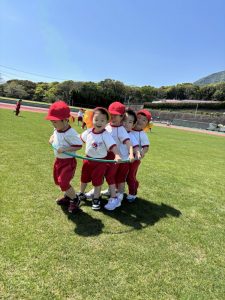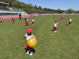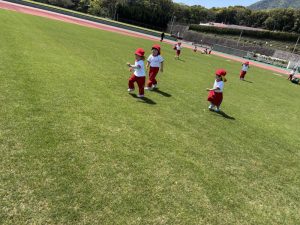 前投稿の年中さんと同日、年少さんも陸上競技場へ行って来たので、その様子をご紹介します😊
